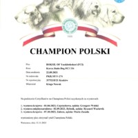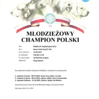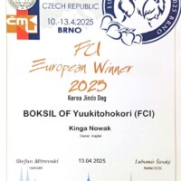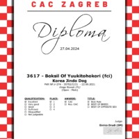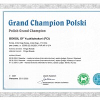 Komentarze sędziów: doskonale rozwijające się szczenię o pięknej proporcjonalnej głowie z doskonałym wyrazem rasy i płci, dobrze zaznaczony stop, doskonały pigment, prawidłowa szata, uszy idealnie osadzone i noszone, idealna górna i dolna linia, doskonały ruch, temperament i charakter, idealna szyja, umiarkowane przedpiersie, proste kończyny, zwarte łapy, harmonijnie zbudowany pies, doskonałe proporcje ciała, pełen energii w ruchu, doskonały samiec, poprawny rozmiar, bardzo typowa głowa, dobre uszy i oczy, bardzo otwarty temperament, elegancki o doskonałym formacie, szlachetna szyja, bardzo ładny kształt łap, cudowny charakter, doskonała kondycja, piękna głowa, idealne ciemne oczy, doskonały kształt i noszenie szyi, proste nogi, samczy i mocny, doskonały front, dobra substancja ciała, bardzo słodki charakter,