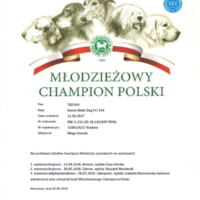 Komentarze sędziów: doskonały przedstawiciel rasy, o typowych proporcjach, pięknej głowie, doskonałym kątowaniu kończyn, doskonałej linii górnej, doskonałym ruchu, doskonałej akcji, dobrej jakości sierści, samczy w wyrazie, klatka piersiowa umiarkowanie głęboka i mocna